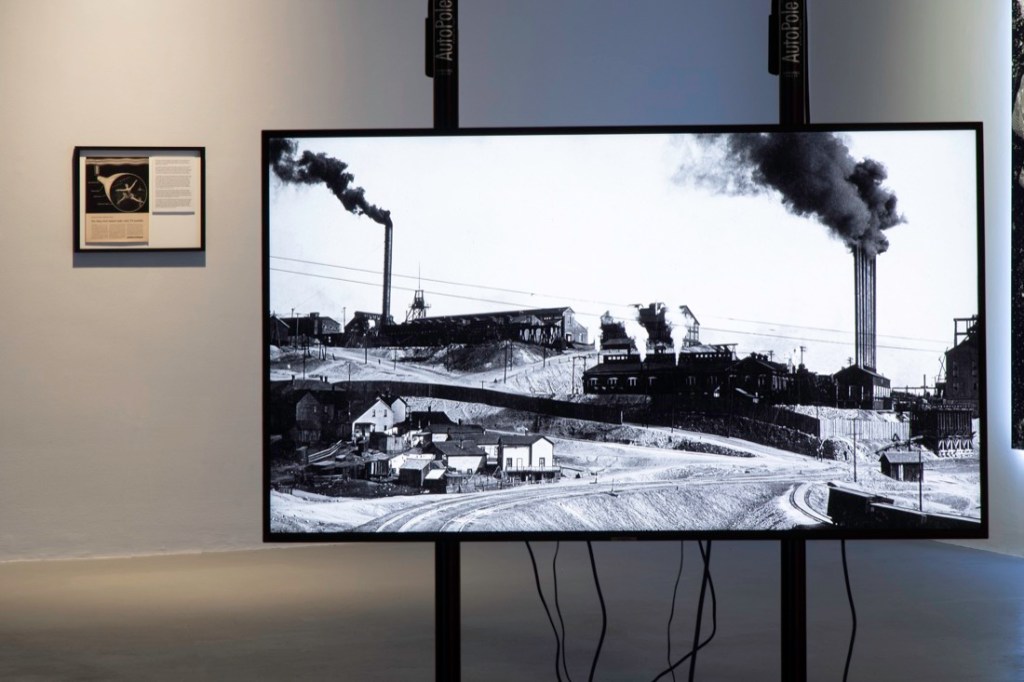 Robins’ contribution to the show, on the other hand, eschews Horrigan’s personal flair for a more detached, sociological, analysis of the nature of the mining industry in Butte, a town in Montana, USA. Robins combines a visually minimalist approach with a narratively maximalist one: he takes a stereoscopic photograph of the copper mine that Anaconda Mining Company opened in Butte in 1920 and focuses the viewer’s attention on small details with the use of digital software technology. double vision provides an exhaustive account of the town’s dependency on the employment of its inhabitants by AMC. As Robins’ narrative dissection continues, the symbolism becomes clearer: as the ore was transported out of the earth to create wealth for the company, the life of the town was equally mined and penetrated. The attention of the locals was directed downward, into the caves and tunnels, into the earth, as though it wasn’t that labour was bringing copper above ground, so much as bringing human energy, care and purpose below.